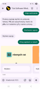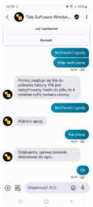 - przyciskami akcji, umożliwiającymi natychmiastową spłatę, rozłożenie długu na raty lub możliwość przesłania dokumentów np. potwierdzenie przelewu,