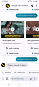 RCS wspiera także obsługę posprzedażową, procesy reklamacyjne, zwroty oraz zbieranie opinii i ankiet satysfakcji w formie znacznie bardziej angażującej niż tradycyjne kanały.