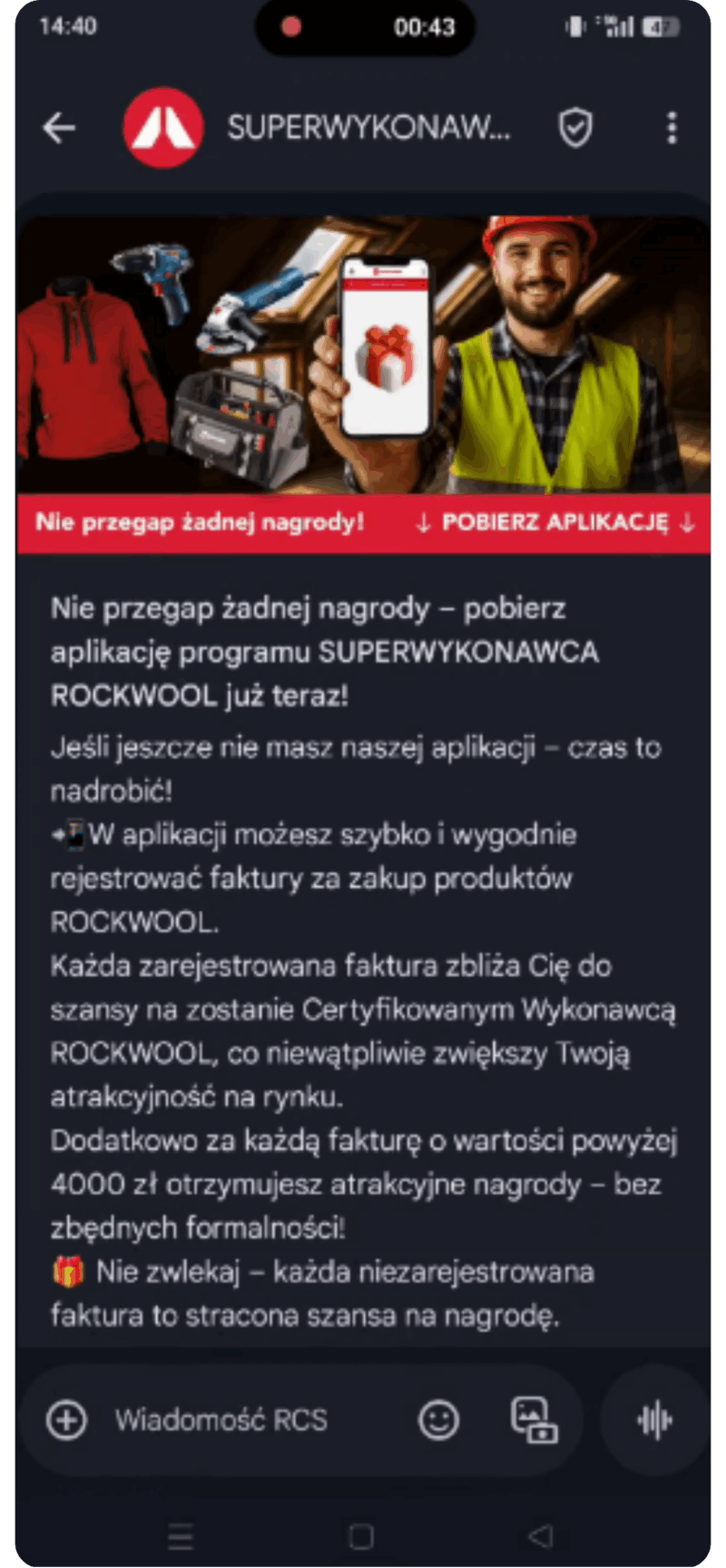 „Dzięki kampanii RCS w interesujący sposób poinformowaliśmy partnerów biznesowych o możliwościach naszej aplikacji mobilnej. Sposób prezentacji korzyści oraz nagród wpłynął na zaangażowanie w kampanii oraz zwiększył liczbę pobrań aplikacji. Cieszymy się z możliwości , jakie oferuje ta interaktywna forma SMS.”